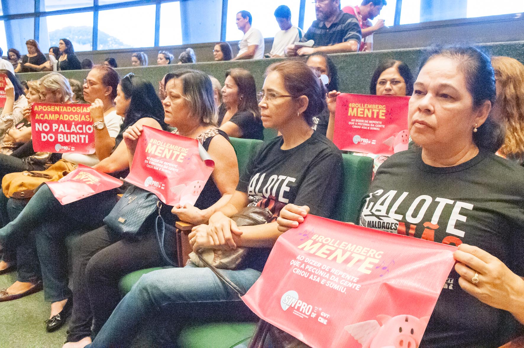 queremos o mínimo respeito e reconhecimento dos servidores ativos e dos aposentados", desabafou a diretora da Secretaria de Aposentados do Sindicato dos Professores (SINPRO), Marilange Vianna. A professora aposentada trabalhou 33 anos na Secretaria de Educação e está na luta pela valorização da categoria.