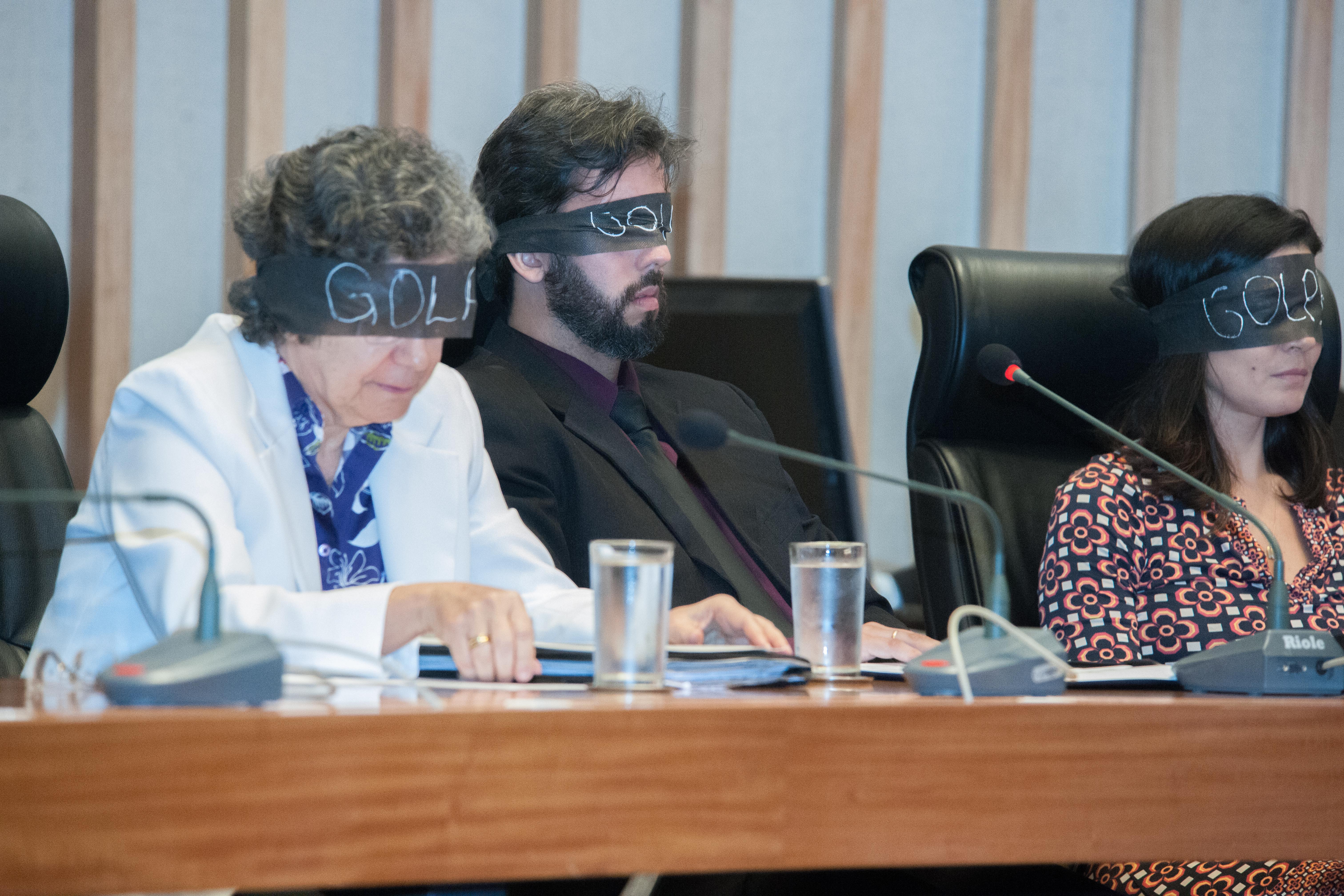 De venda preta nos olhos, onde estava escrita a palavra "GOLPE", os presentes à comissão geral da Câmara Legislativa que lembrou os 55 anos do golpe militar, nesta quinta-feira (4), ouviram trechos de áudios históricos: transmissões radiofônicas da época e depoimentos de vítimas da ditadura. Em seguida, foi entoada a canção "Cálice", de Chico Buarque e Gilberto Gil, lançada em 1978, cinco anos após tido sido censurada. "Nosso objetivo é trazer informação num momento em que fatos são distorcidos para uso político", explicou o deputado Leandro Grass (Rede), que requereu a realização do debate.